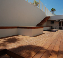 ריצוף חיצוני בעץ טבעי יוצר אזורי מחייה ובילוי יפהפיים המחברים בין הבית והגן. הדק בנוי מלוחות עץ המונחים על גבי קונסטרוקציה של עץ וברזל ומותאמים לכל תנאי השטח. אנו משתמשים בעצים שונים כגון: אורן פיני מוקצע ומחוטא, אייפאה ברזילאי, אירוקו אפריקאי, טיק בורמזי ועוד.